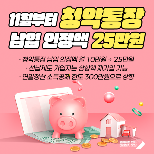 이제는 월 25만 원을 넣어야 청약 당첨 확률도 높이고, 세금 혜택도 꽉 채워서 받을 수 있습니다.